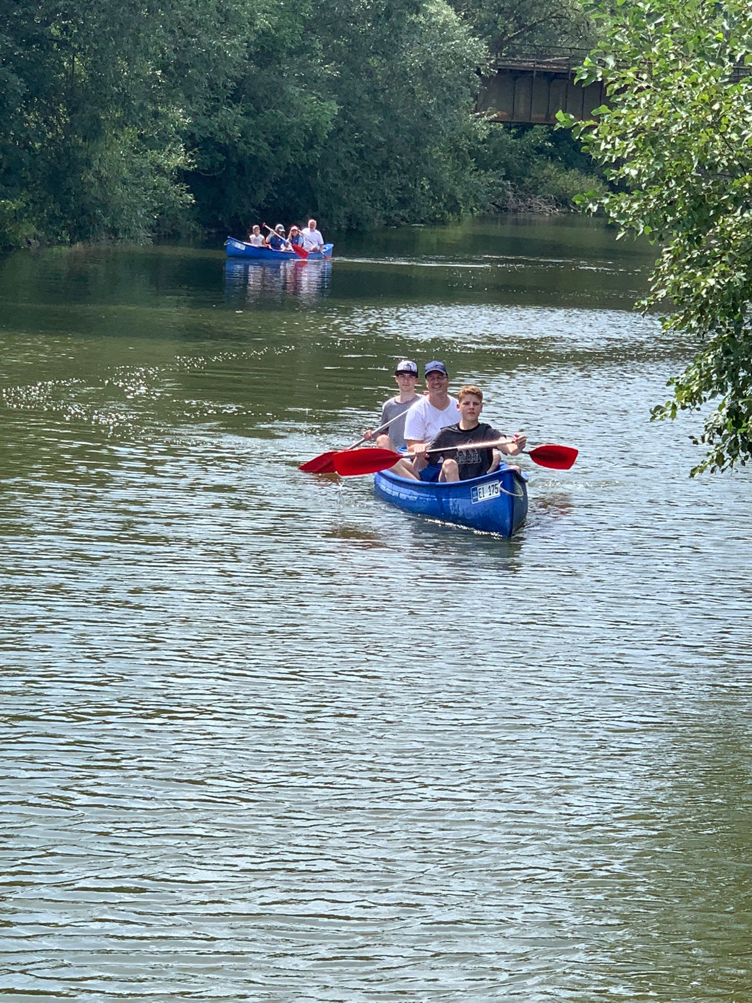 Bereits das zehnte Mal in Folge führten wir am 18. August 2022 im Rahmen des Ferienprogramms die Kanu-Fun-Tour auf der Altmühl durch. Von Solnhofen ging´s nach Dollnstein. Insgesamt ruderten wir 12 Kilometer auf der Altmühl und bewunderten die schöne Landschaft. Die 7 Ferienkinder hatten ihren Spaß, auch wenn beim ein oder anderen schon nach wenigen Kilometern die Kräfte schwanden und das Rudern eingestellt wurde. Zwei Bootsrutschen sorgten jedoch für Spaß. Als Belohnung fuhren wir im Anschluss an unsere Kanu-Fun-Tour nach Neuburg, wo es für alle ein leckeres Eis gab. Zurück in Weichs haben wir alle Ferienkinder persönlich nach Hause gebracht. Insgesamt war es ein ereignisreicher Tag für die Ferienkinder.